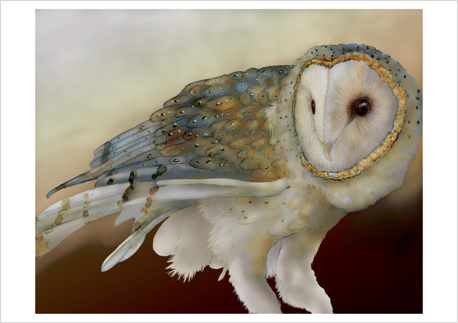 American artist Jeannine Chappell is utterly captivated by owls, and she has devoted a great deal of creative energy to depicting them. She spent hours and hours observing owls in the care of local rescue organizations in the San Francisco Bay Area, where she lived for many decades before deciding to nest on the Olympic Peninsula in Washington State. In addition to her favorite birds, Chappell portrays other wildlife, landscapes, and natural wonders in collage-like works that are begun on paper and later digitally enhanced. “This technique allows me the best of two worlds,” she says, “the spontaneity of watercolor, pencil, and crayon on paper and the editing capabilities of the computer.” Her art conveys the unique character of each species and setting, bringing viewers closer to nature.