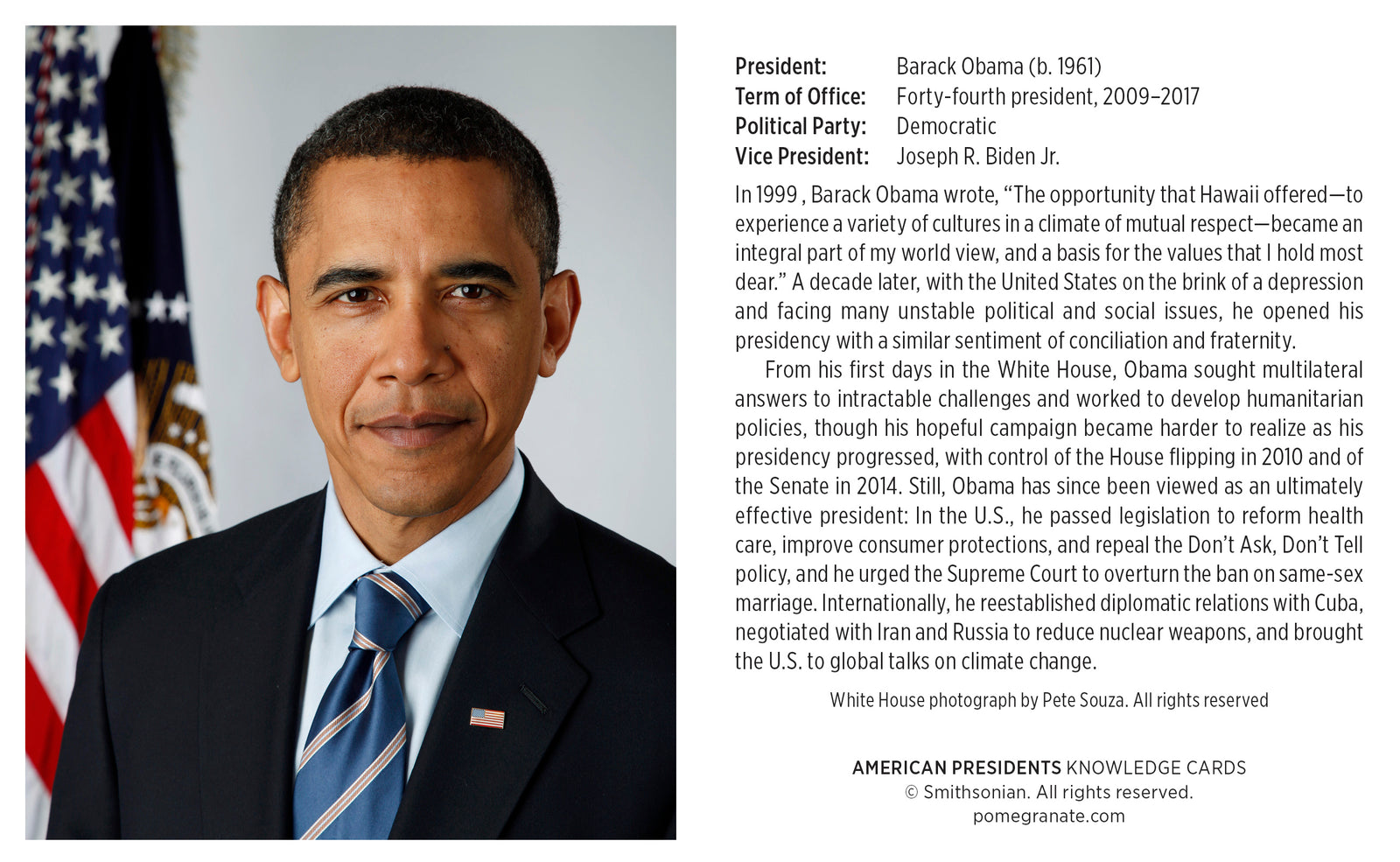 From the collections of the National Portrait Gallery, paintings, prints, and photographs of 45 American presidents are brought together in this deck of 48 Knowledge Cards in an educational and entertaining review. Each president’s card gives information about him: term of office, political party, and vice president(s). Additional cards explore such landmark events as the Republican and Democratic conventions of 1860 and the first reading of the Emancipation Proclamation. Concise but insightful, these cards are both aesthetically pleasing and intellectually rewarding.