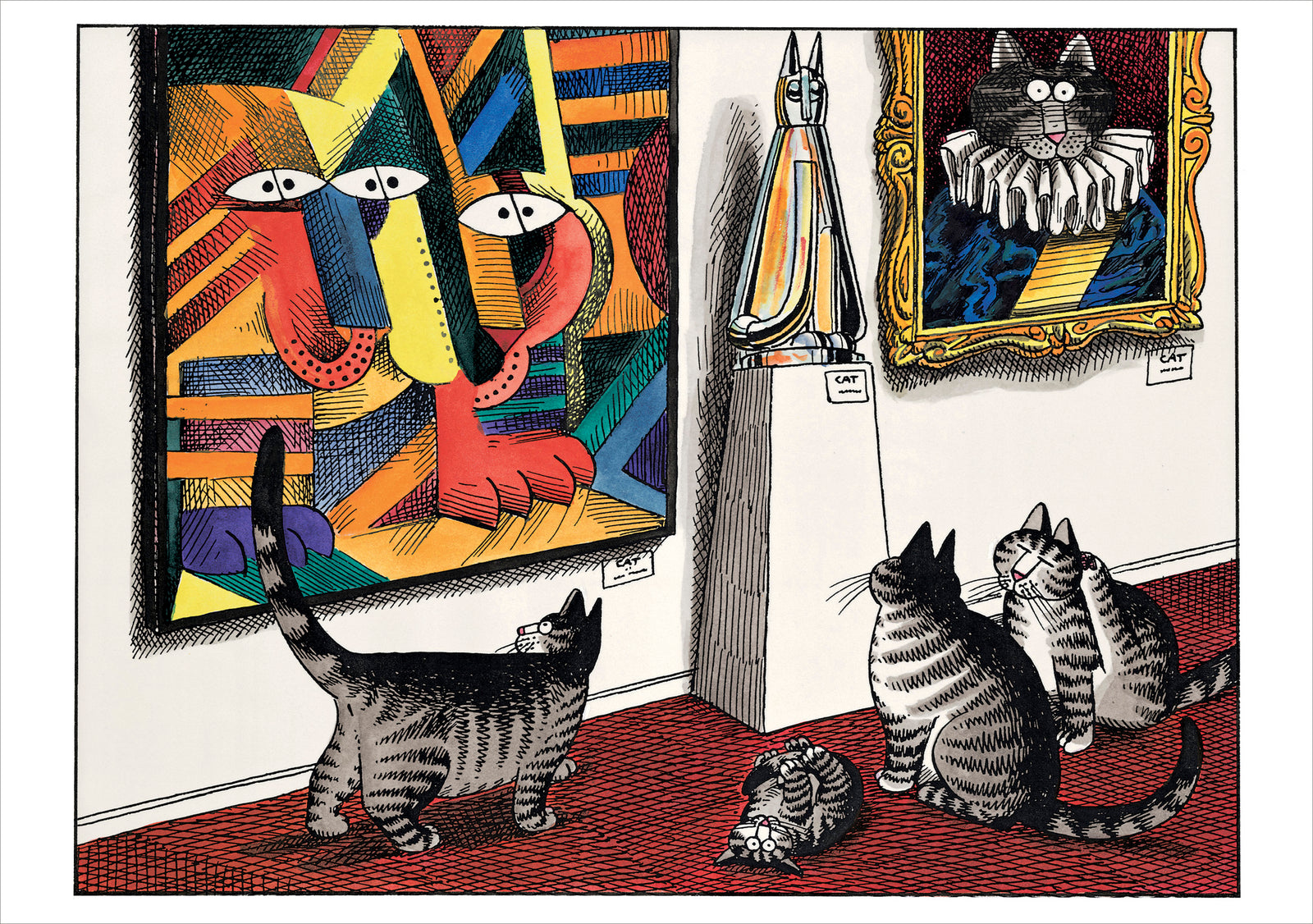 The Cats of B. “Hap” Kliban’s imagination have been delighting children and adults since the publication ofCatin 1975. And why not? The timeless Cat, often wearing signature red tennis shoes, lives in a world of adventure that real cats, and their people, can only dream about. Kliban (American, 1935–1990) spent most of his art career in the San Francisco Bay Area. He sold his work toPlayboymagazine, which helped establish him as one of America’s top cartoonists. He also sold cartoons to theNew Yorker, National Lampoon, Esquire, and Punch. Kliban pioneered a new genre of single-panel adult cartoons and published several humor books in addition to his Cat creations. His body of work continues to inspire artists today.