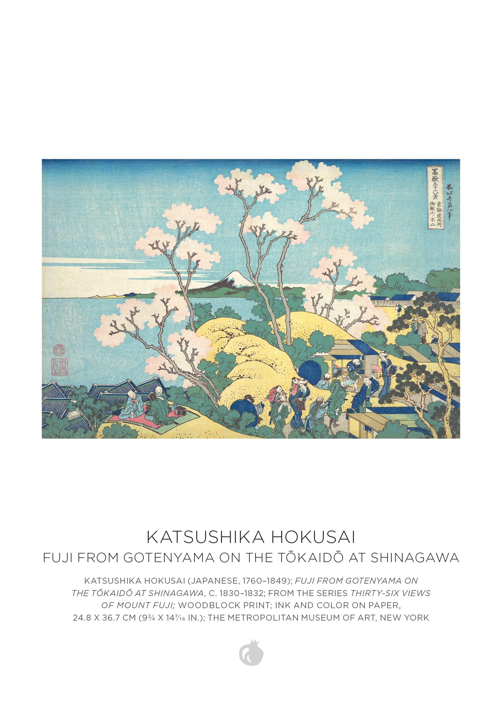 Moving constantly (over 90 residences), creating profusely (tens of thousands of works), and with each phase of his life reinventing himself and taking a new name (around 30 names in all!), Katsushika Hokusai pioneered and mastered artistic styles of late Edo-period Japan. Beginning with ukiyo-e, or “pictures of the floating world,” he created woodblock prints of figures under the direction of Katsukawa Shunshō. After Shunshō’s death and an ensuing series of events, he took the name Hokusai and shifted his focus to nature, which he would continue for the rest of his life. In his old age, his most celebrated period, he called himself Gakyō Rōjin, or “Old Man Mad about Painting.”
