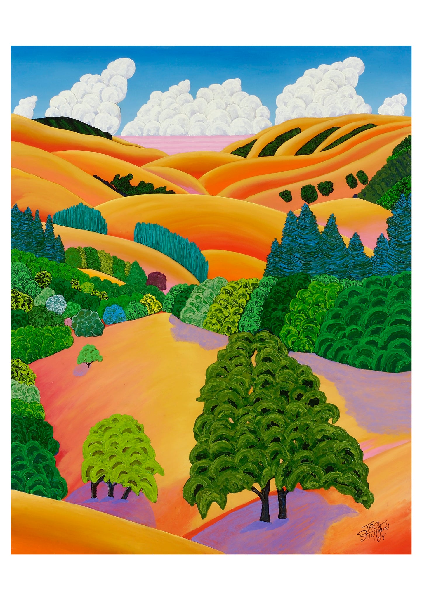 Jack Stuppin’s plein air paintings envision countryside vistas at their most dazzling. Invoking both the airy brushstrokes of Impressionism and the expressive colors of Modernism, Stuppin works in contrasts, pairing earthy tones with vibrant hues and flattened forms with deep perspectives. In this notecard set, he depicts the majesty of California and the depth of the Hudson River Valley in dramatic patchworks that span the American coasts. Contains five each of the following images: Pink Fog, 2008 Freestone, Golden Hills, 2008 Catskill Moon, 2013 Olana Forest, 2009