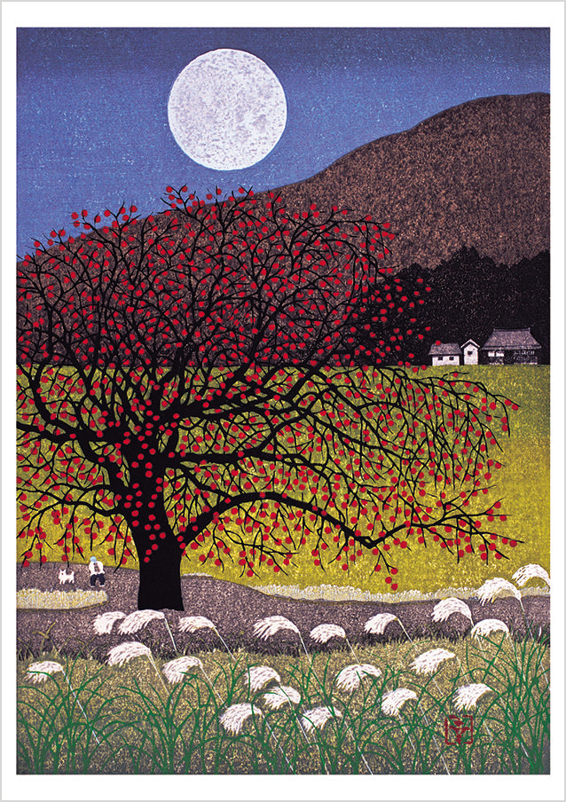 In the perfectly balanced compositions by Kazuyuki Ohtsu (Japanese, b. 1935) we find tranquil scenes of natural beauty, where fallen snow quiets the land and autumn leaves erupt in a riot of color. Born into a family of silk weavers, Ohtsu began the study of printmaking at 19. He apprenticed with celebrated artist Kiyoshi Saito for 40 years. With the passing of Saito, Ohtsu set out on his own career. Like his teacher, he paints the original pictures that serve as blueprints for the hand-carved blocks, then inks the blocks and prints the images. Ohtsu’s artworks forsake an earlier period’s use of strong outlines, instead relying on elemental colors and gentle shapes to depict a harmonious, idealized view of the Japanese countryside.