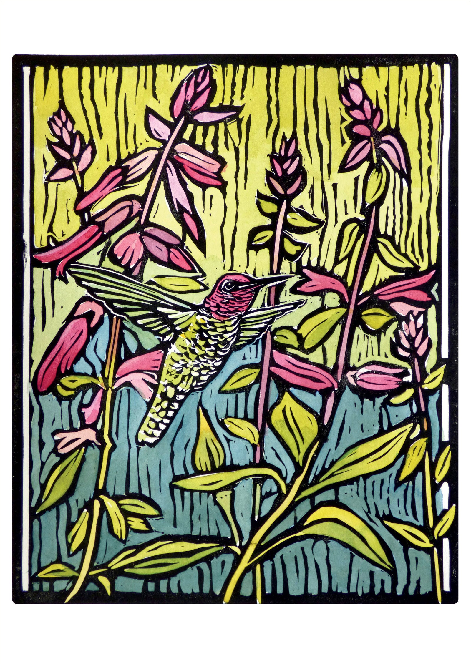 Molly Hashimoto: Anna's Hummingbird & Salvia Birthday Card