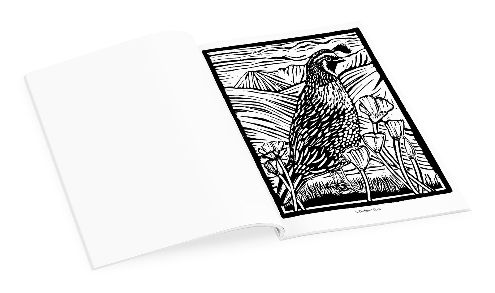 Artist Molly Hashimoto studies birds in their natural habitats. Whether a woodpecker perched on a tree looking for its next meal or a tiny hummingbird caught in a moment of stillness, the birds portrayed by Hashimoto reflect her profound relationship with nature. In this coloring book her uncolored block prints are presented for you to draw. Hashimoto’s finished versions—hand tinted with watercolor—are reproduced on the inside covers.